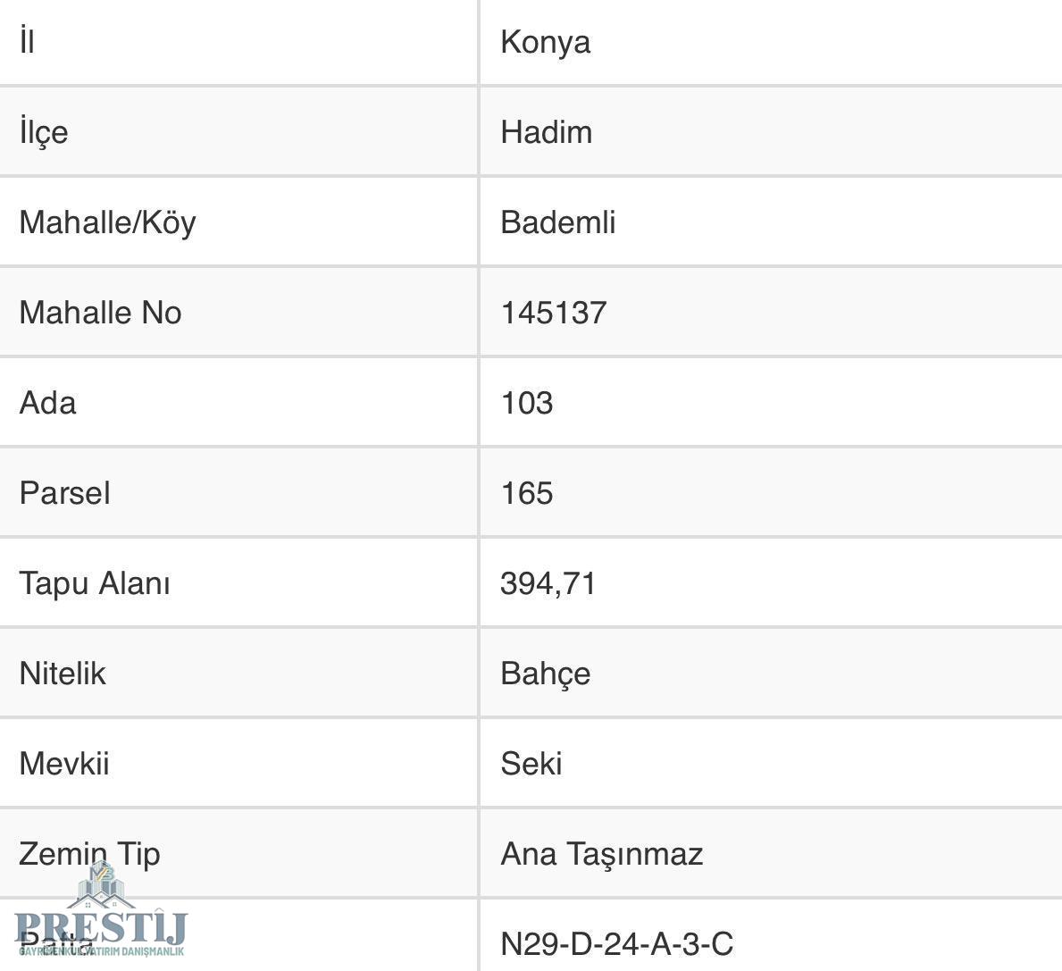 AFYON PRESTİJ GAYRİMENKULDEN KONYA HADİM BADEMLİ KÖYÜ SATILIK BAHÇE